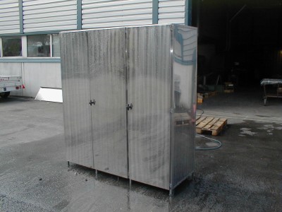 Rustfritt skap med spesialinnredning. Høyglanspolert.
