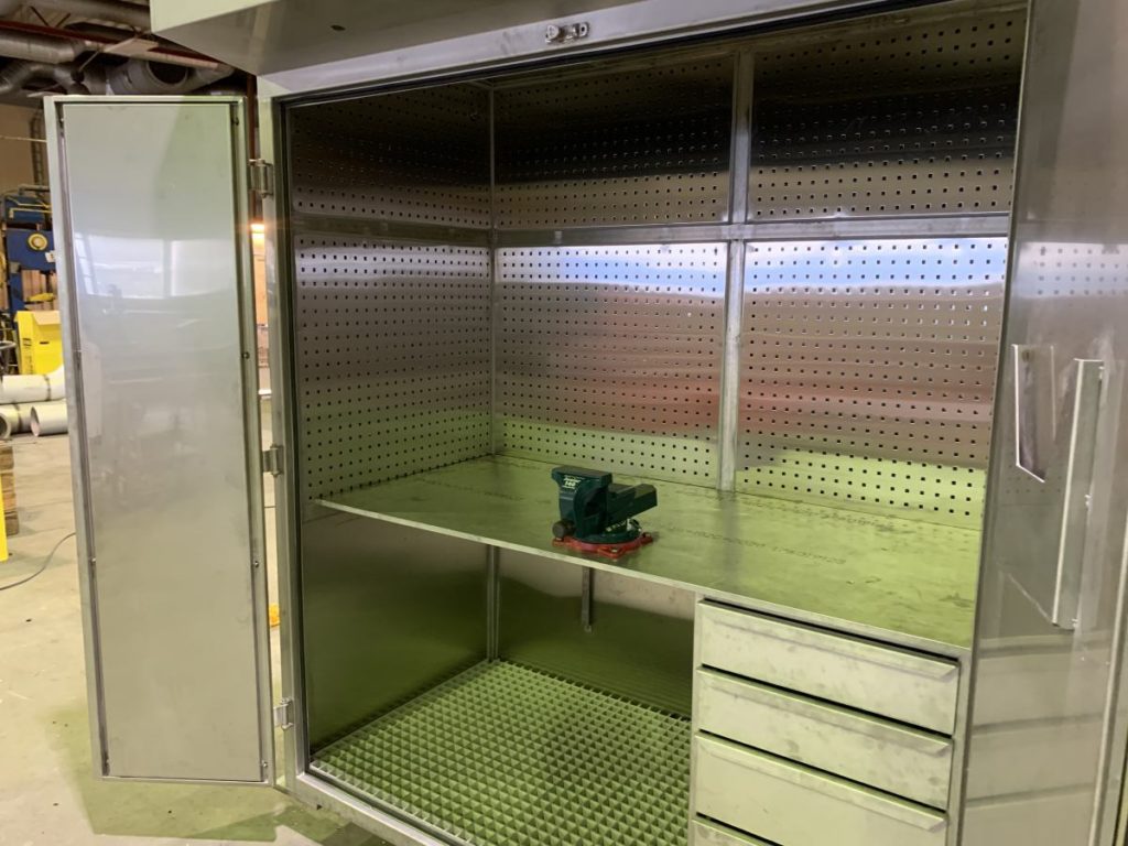 Rustfrie skap Rustfrie skap Vi produserer skap med og uten spesialinnredinger, og en rekke skap for bruk offshore.